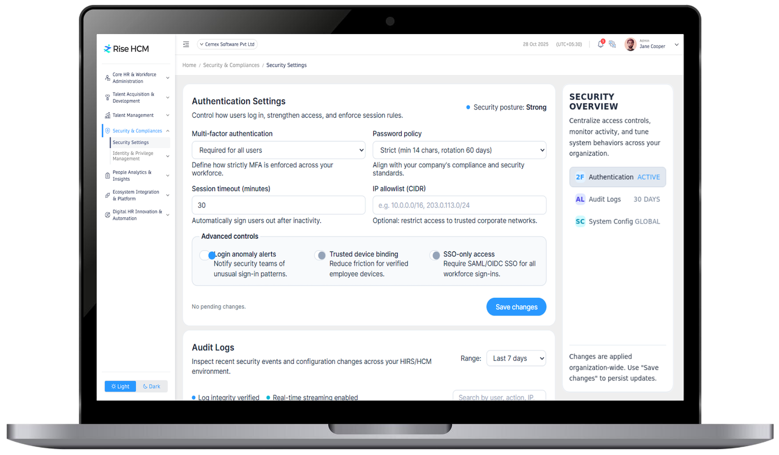 Manage user roles and permissions effortlessly. Rise HCM centralizes identity control across platforms, ensuring the right people have the right access at the right time.